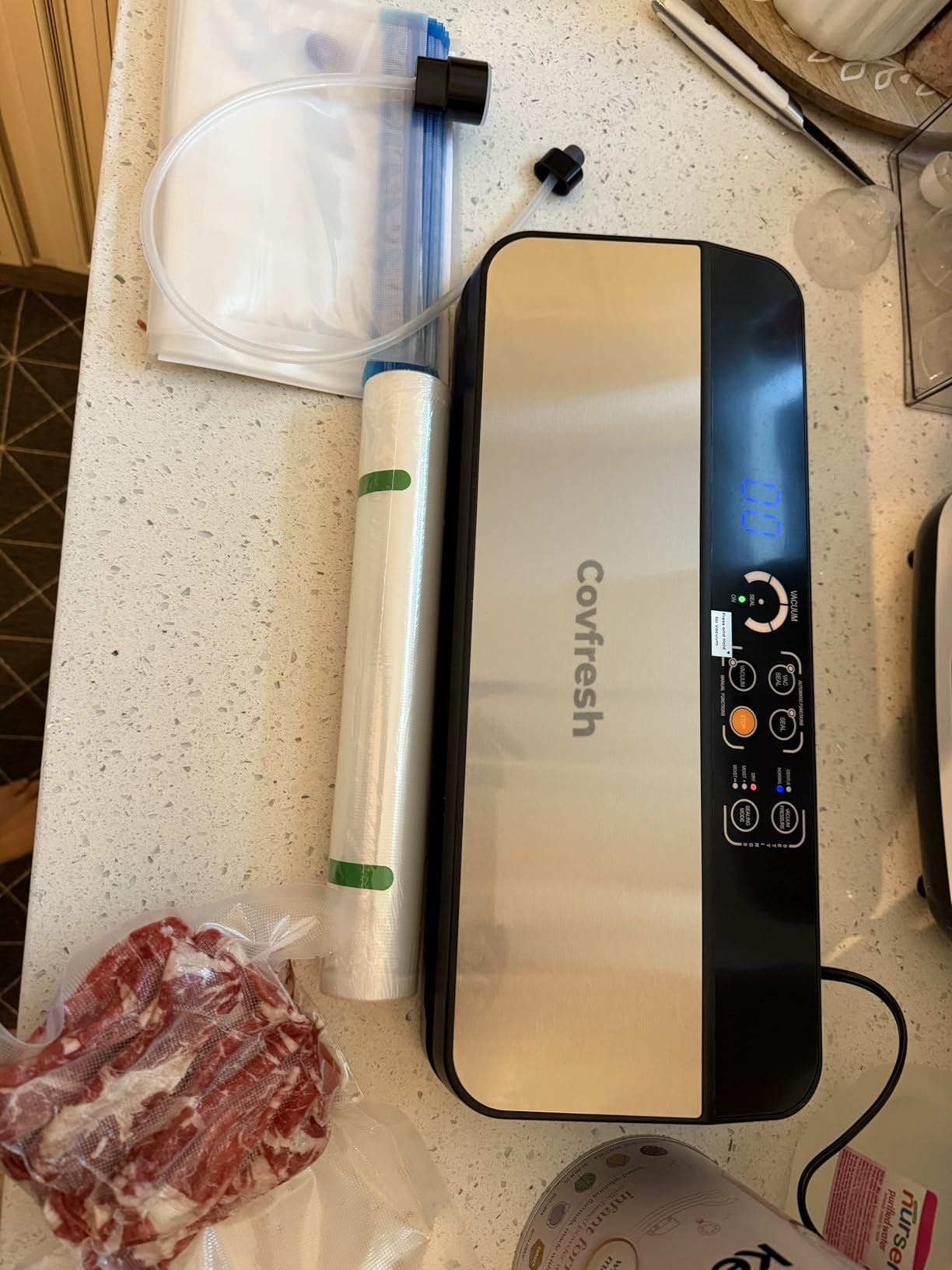 Universal Bag Fit:Compatible with all standard vacuum sealer bags, plus free bonus rolls included. Use as a food vacuum sealer machine for dry goods, marinating, or low-temperature cooking