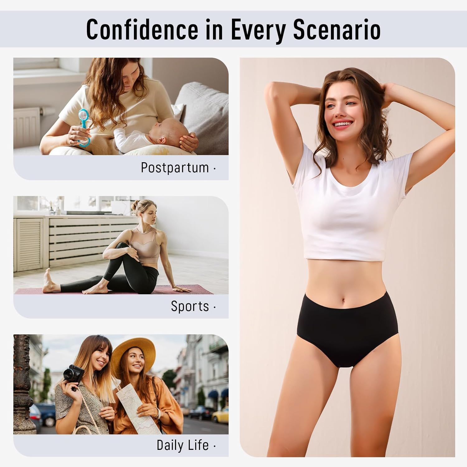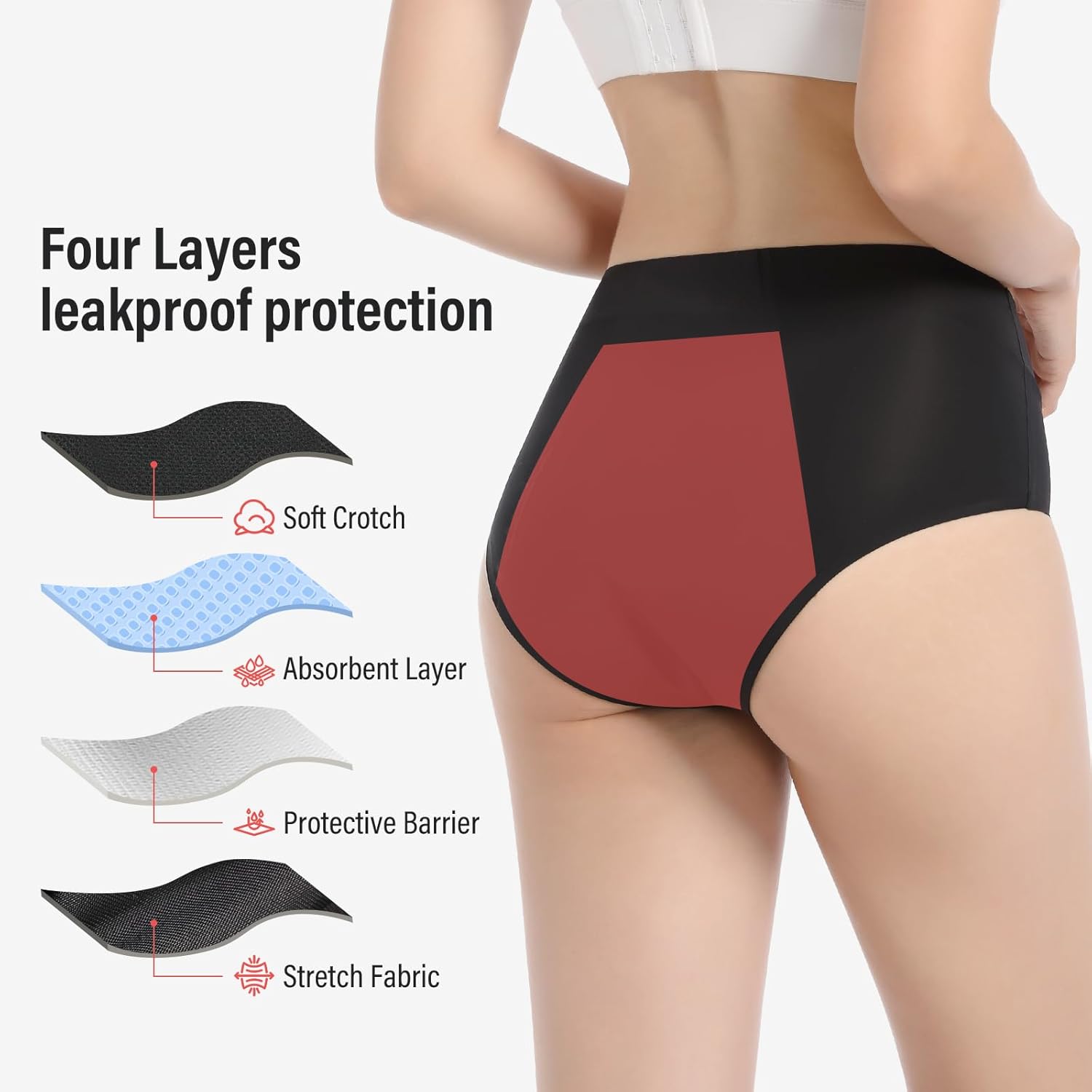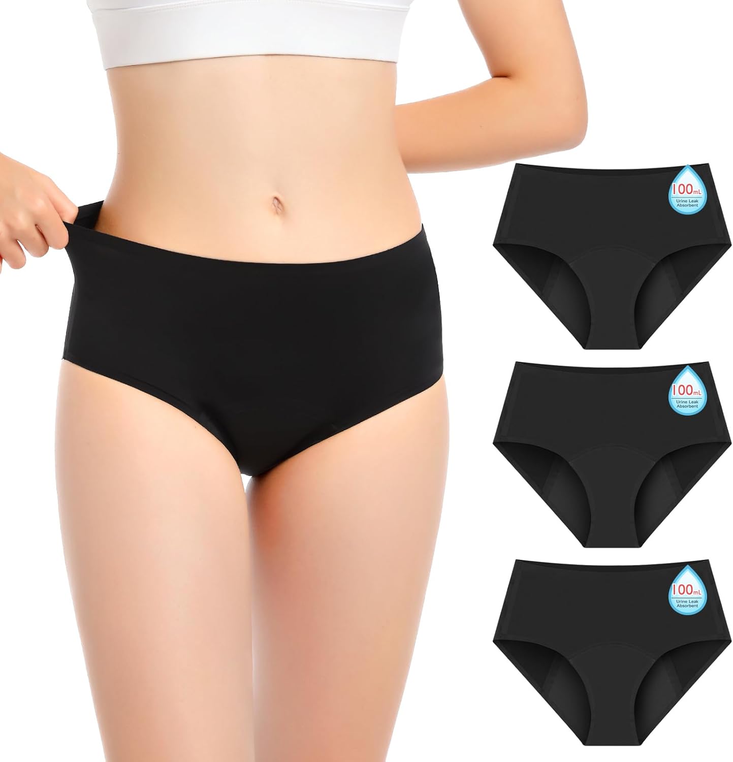 VOXSHE Incontinence Underwear for Women Washable Womens Leak Proof Panties for Bladder Leak 100ml High Absorbency Reusable Incontinence Protective Briefs 3pk